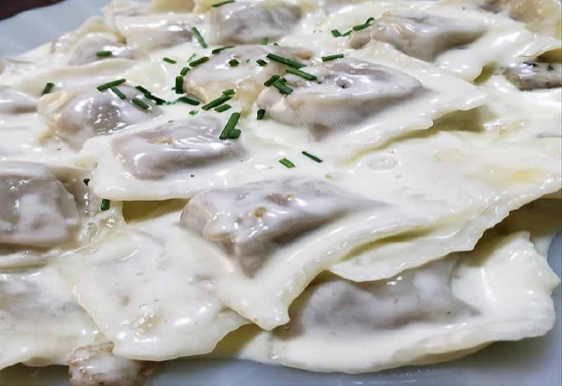 Volcar los ravioles, revolver suavemente, apagar el fuego y servir. Decorar con ciboulette cortado.