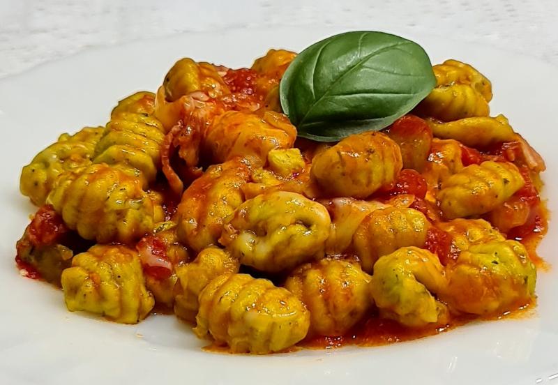 Se puede usar ñoquis de papa o de papa y espinaca "Pasta Faggioli".