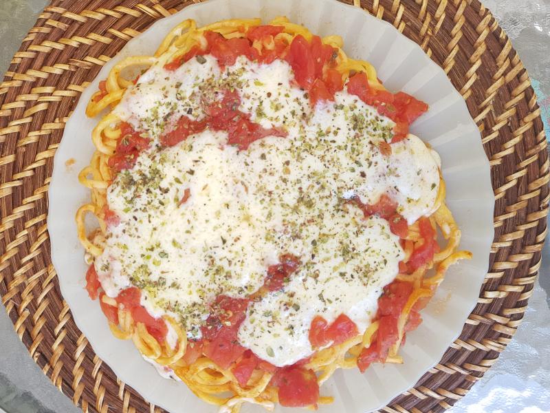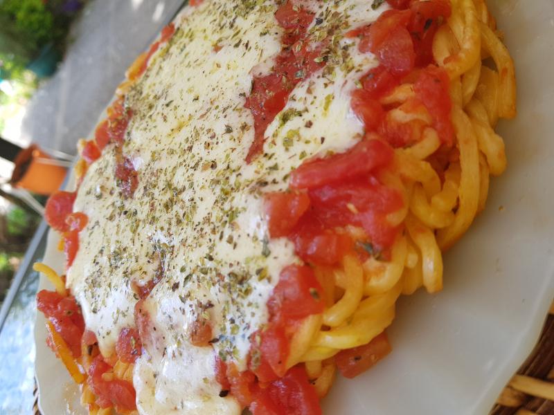 A los tomates triturados o cubeteados, agregarles sal, pimienta y orégano a gusto (no olvidar también una cucharadita de azúcar).