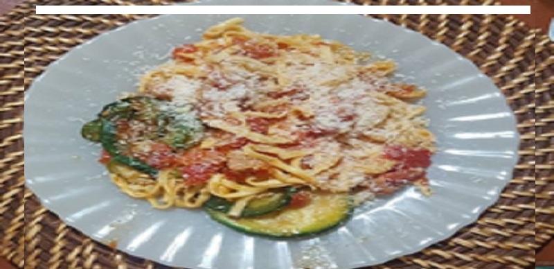 En una sartén, calentar el aceite de oliva y cocinar las rodajas de zapallitos por ambos lados, salar a gusto. Reservar. Cocinar la cebolla alrededor de 2/3 minutos junto con la panceta. Luego, agregar los tomates cubeteados, salpimentar a gusto. Tapar la olla y dejar que se cocine a fuego bajo alrededor de 10 minutos. Agregar los zapallitos, revolver suavemente y cocinar a fuego bajo otros 10 minutos. Agregar orégano (a gusto) y apagar el fuego. Dejar reposar unos 10 minutos. Mientras tanto, cocinar los fideos (al dente) en abundante agua, colar rápido, o sacar con pinza, y agregarlos a la salsa, revolviendo suavemente y servir. Agregar queso rallado (a gusto).